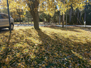 We have several trees in our yard and so every fall we rake leaves. Sometimes that's quite a job. Last year we had some help from some of the kids and grandkids. This year we did again. That's always nice.